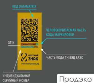 Этот код содержит все сведения о товаре. Он состоит из двух частей – кодов идентификации и проверки. Код идентификации представляет собой позицию продукции в системе и государственном каталоге. Генерацию кода проверки или крипто-хвоста осуществляет оператор.