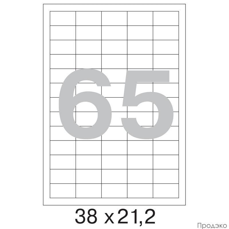 - Оптимальный размер: 38x21,2 мм, 65 самоклеящихся этикеток на одном листе А4 — удобно для массовых операций.