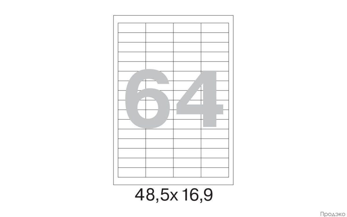 Листовые самоклеящиеся этикетки формата А4 размером 48,5х16,9 мм (64 этикетки на листе, упаковка 100 листов) — незаменимый расходный материал для складов, офиса, магазинов и маркетплейсов. Удобно купить оптом или заказать под свой проект: такие этикетки подходят для штрихкодов, инвентарных номеров, адресных ярлыков и ценников. Легко печатаются на стандартных лазерных и струйных принтерах, экономят время на ручной наклейке и обеспечивают аккуратный внешний вид.